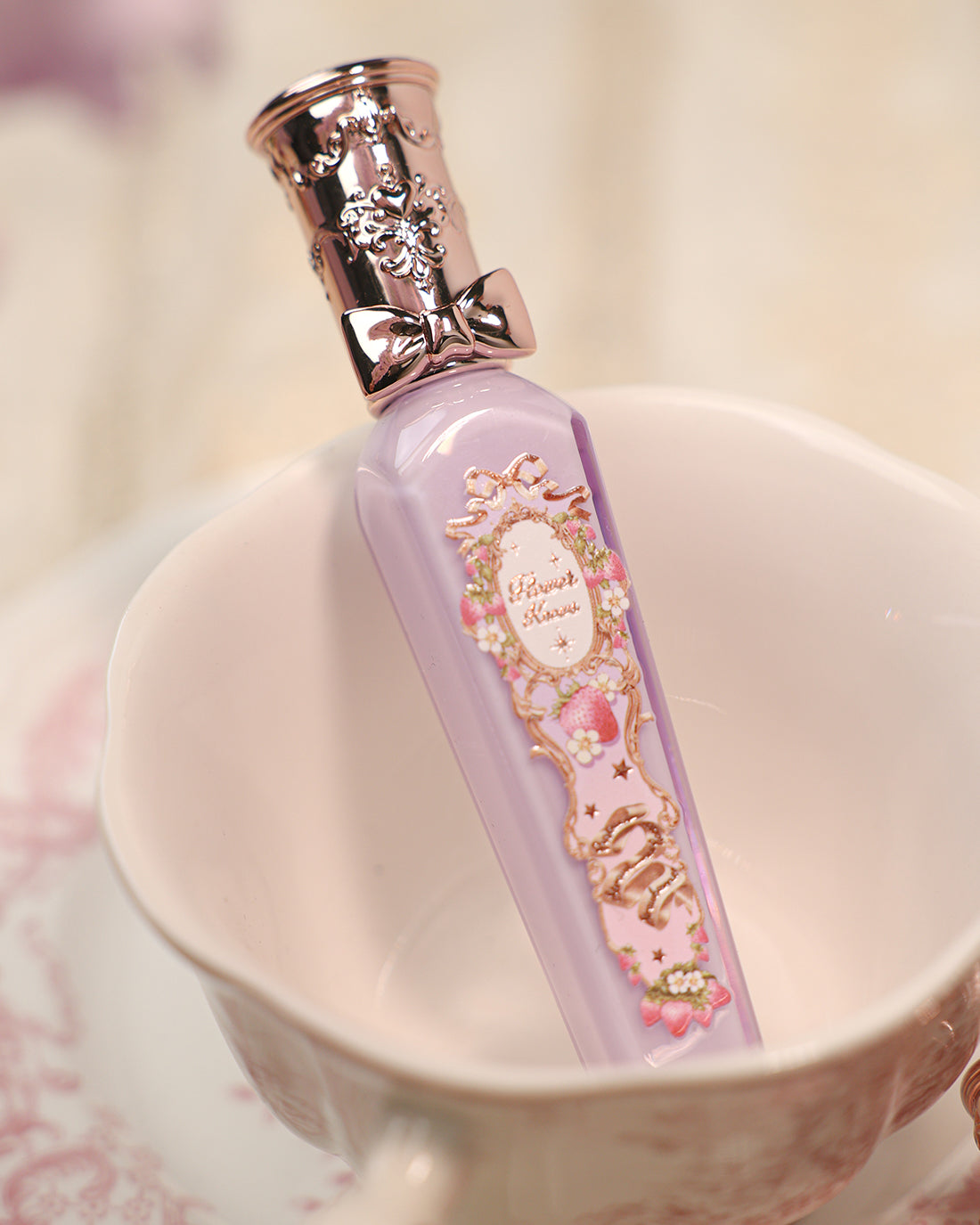 Discover Violet Strawberry Rococo, a limited edition lip gloss inspired by vintage perfume bottles and the elegance of the Rococo era. Its exquisite dual-layered acrylic packaging is both delicate and travel-friendly, with a unique violet hue that adds a touch of romance and exclusivity.