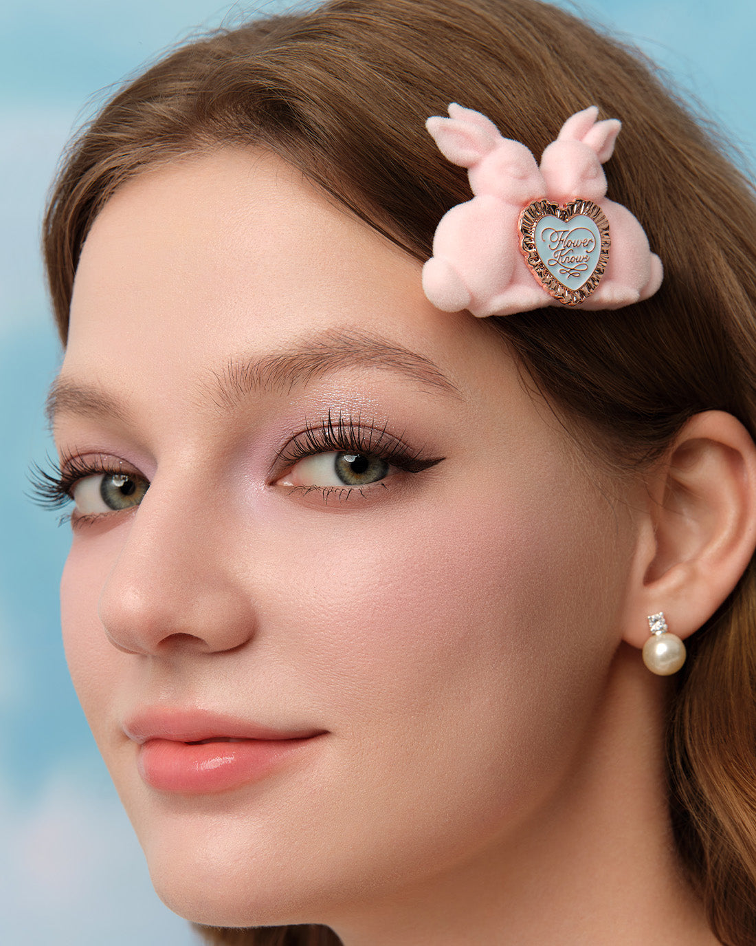 This creamy bar hair clip features a refined double-bunny design that adds a subtle playful detail to any hairstyle.
