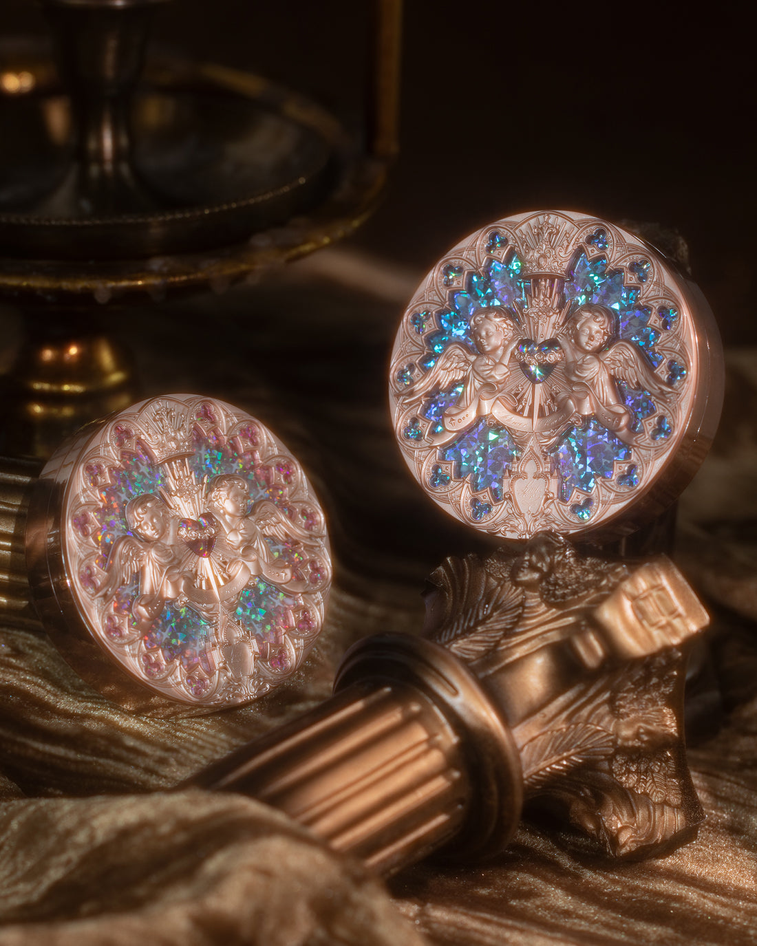 Inspired by the luminous dance of sunlight through medieval rose windows, this packaging embodies that soft, divine glow—mirroring the way highlighter illuminates the skin with celestial radiance.
