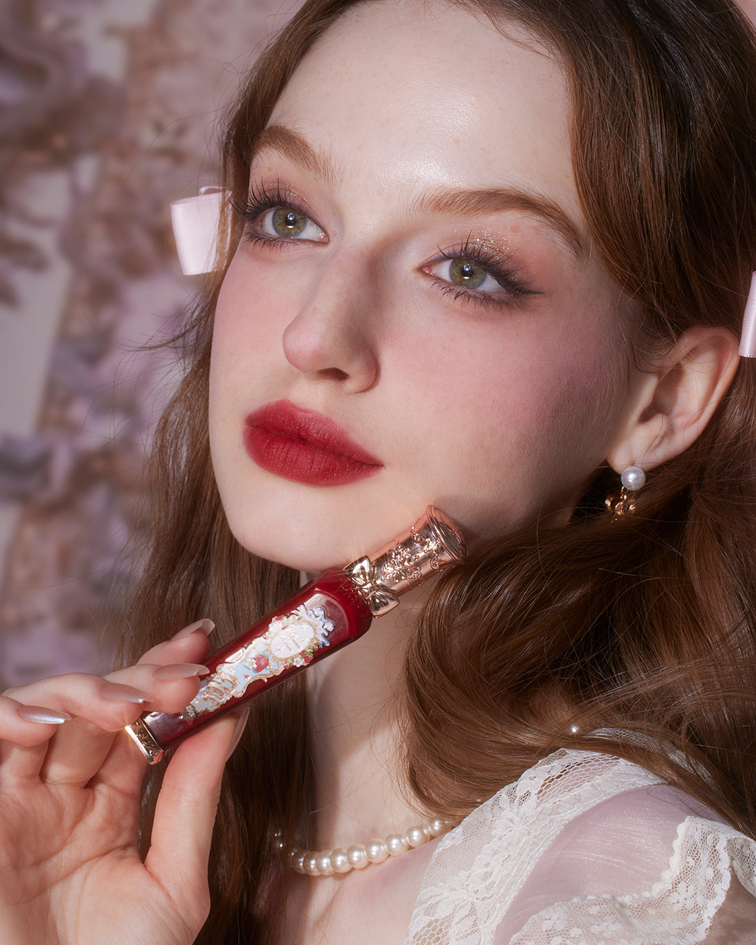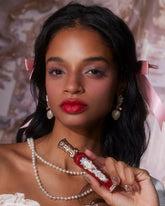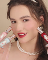 Dripping in Rococo-era decadence, this lip cream tube reimagines vintage perfume bottles with an opulent twist. Playful strawberry accents lend a sweet, nostalgic allure.