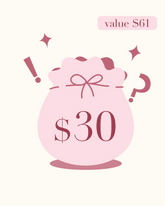 👋 Please be aware that the mystery items in the bag cannot be specifically chosen, but rest assured that each product has a minimum value of $15.