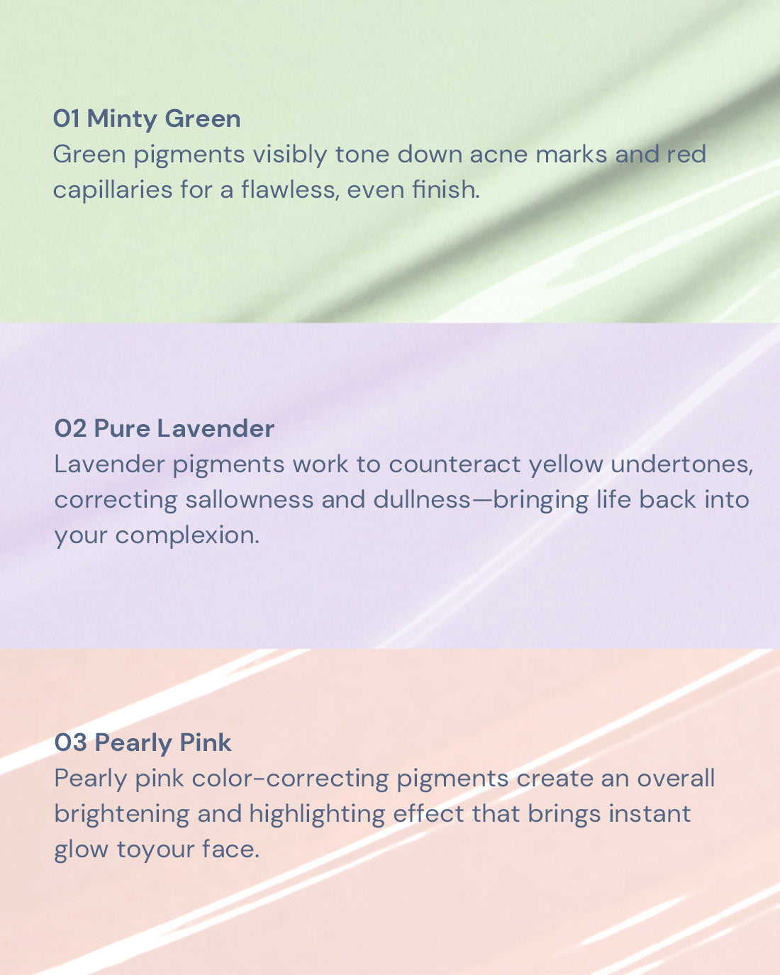 Correct discoloration, moisturize, and prime—all with one weightless veil.