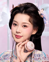 This compact is adorned with fluttering butterflies, delicate floral detailing, and Ruyi-style designs. Gold accents add a touch of luxury to its sleek, portable form.