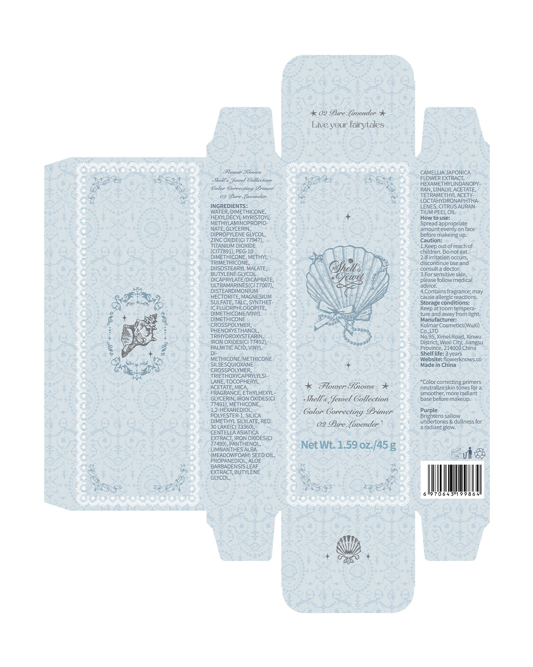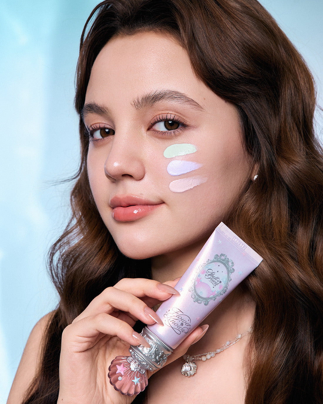 Decorated with elegant silver details and a jeweled seashell cap, this primer shimmers with underwater magic.