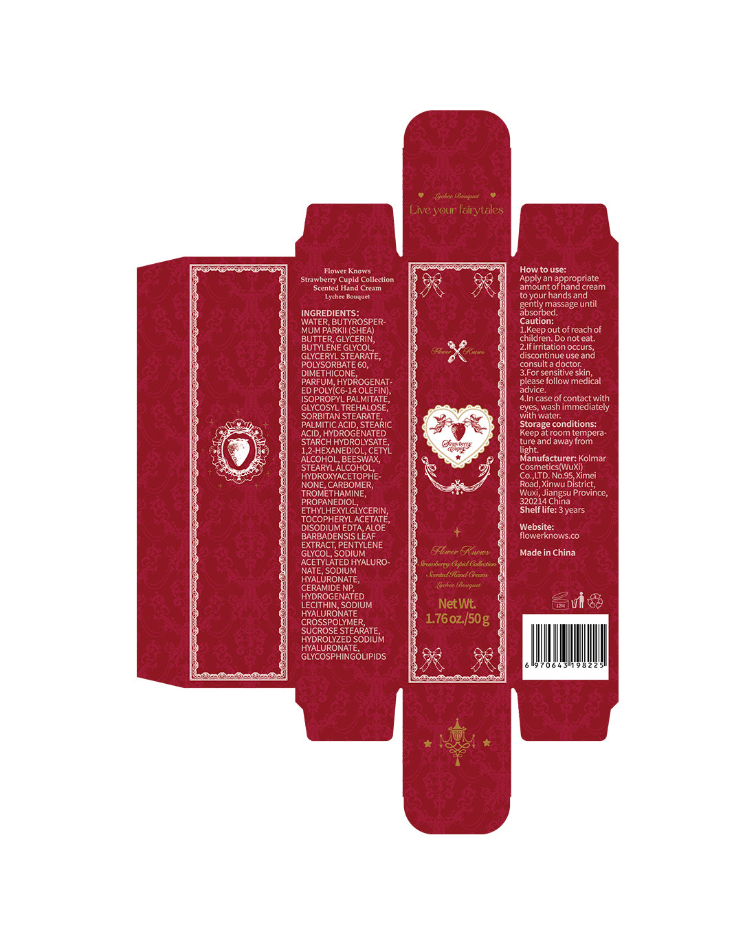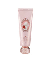 A nod to classic French pastry packaging, this hand cream features a beautiful vintage portrait frame with Cupid and a strawberry, along with playful polka dots that add a touch of sweet romance to your day.