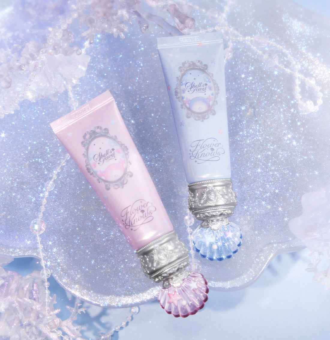 Decorated with elegant silver details and a jeweled seashell cap, this primer shimmers with underwater magic.