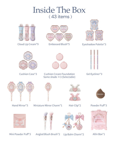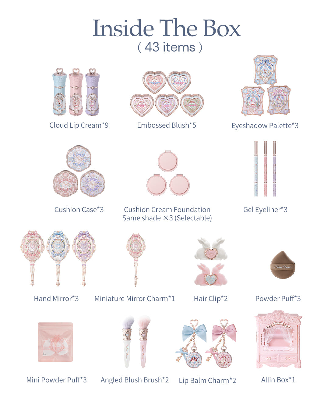 Inspired by a classic French wardrobe, this all-in box is designed like a vintage closet.