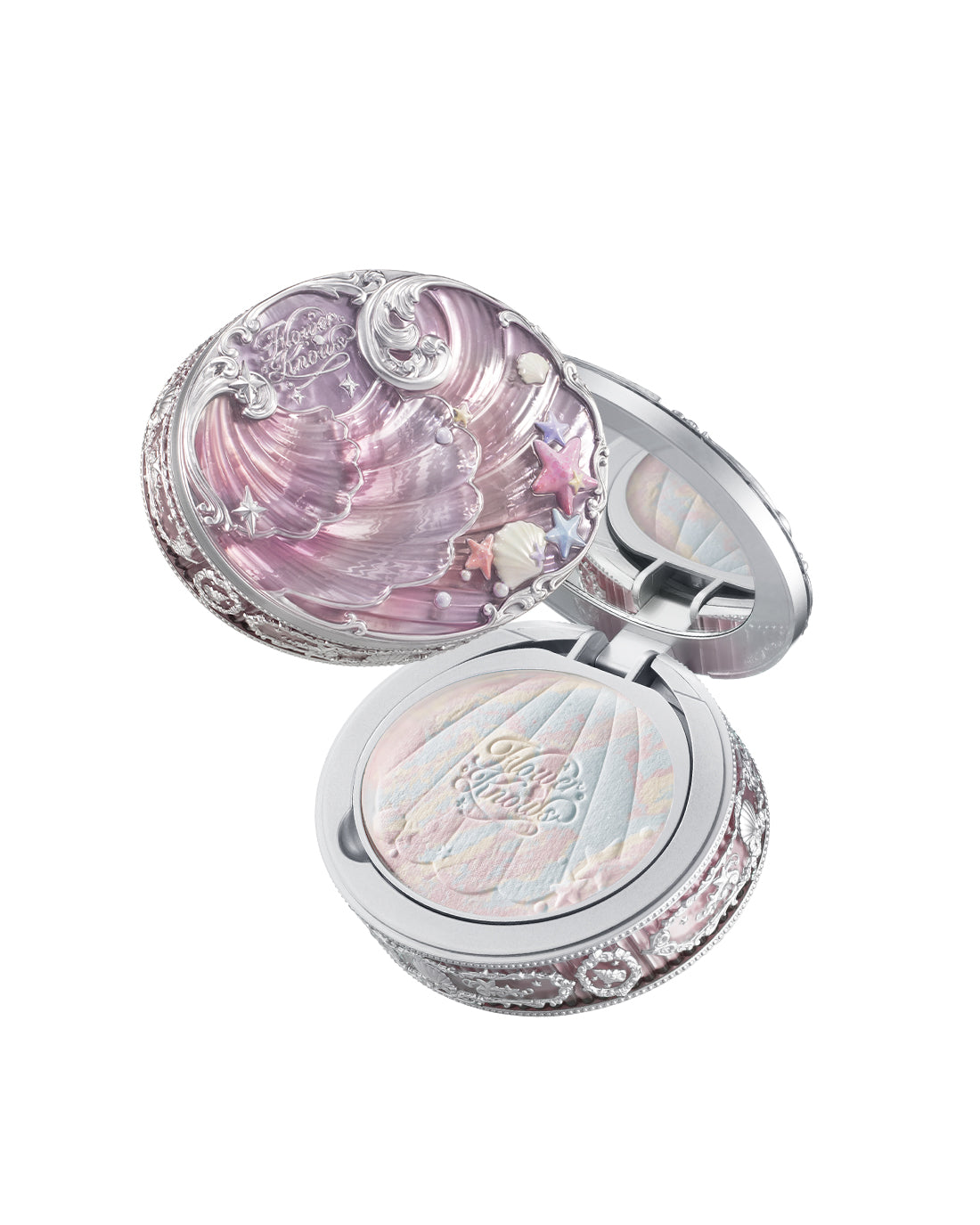 Framed by silvery tides that shimmer in the light, this compact is a like a hazy dream by the sea—washed away at daybreak.