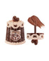 This design brings together the dessert’s charming bell-shaped silhouette with ornate cake piping details for an elegant, luxurious touch.